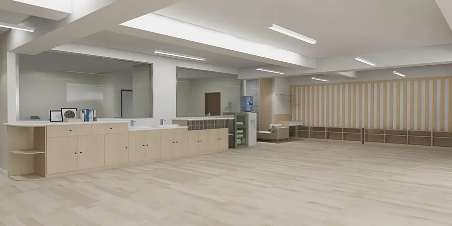 該工程位于深圳市光明高新東片區科技公園西北側,總建筑面積 3293.57㎡,茂華建設集團承建的內容主要有幼兒教室、食堂、多功能活動室、多媒體放映室、游戲活動室、醫務室、園長室、教師辦公室等區域的裝飾裝修工作。