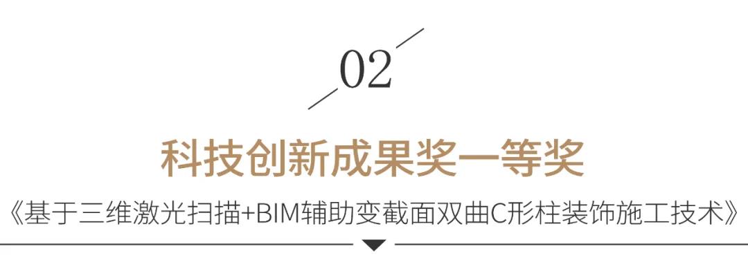 本次公布的名單中,寶鷹集團的《廣西金融廣場酒店二次裝飾設(shè)計》獲設(shè)計創(chuàng)新獎一等獎,《基于三維激光掃描+BIM輔助變截面雙曲C形柱裝飾施工技術(shù)》獲科技創(chuàng)新成果獎一等獎,《大空間采光頂桁架結(jié)構(gòu)鋁板飾面施工技術(shù)》獲科技創(chuàng)新成果獎二等獎,《橫琴星藝文創(chuàng)天地項目一期地塊1精裝修工程-非酒店標》、《中國海南海花島國際會議中心室內(nèi)精裝修工程》獲科技創(chuàng)新工程獎二等獎。