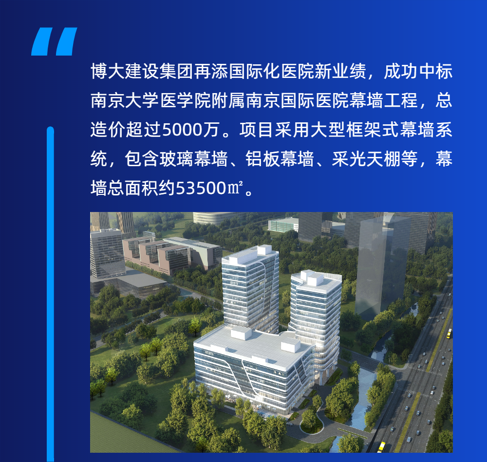博大建設集團:中標南京大學醫(yī)學院附屬南京國際醫(yī)院幕墻工程