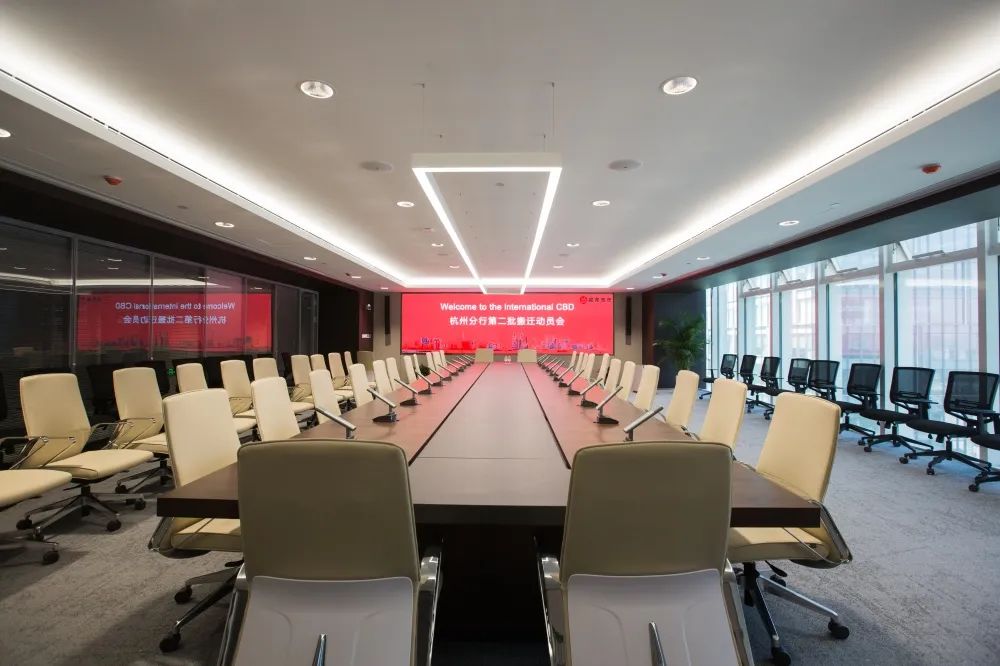招商銀行杭州分行辦公大樓位于錢江新城核心區中軸線西側,毗鄰市民中心,居CBD區域金融圈之中心,與國際會議中心隔街相望。該項目主要運用高級彈性地板、現代灰大理石、維納斯米黃大理石、圣羅蘭灰石材等材料,白色、米黃色石材運用在視覺上使空間更加寬敞明亮,優雅的高級灰應用在空間中,打造一種低調而舒適的現代簡約氛圍。