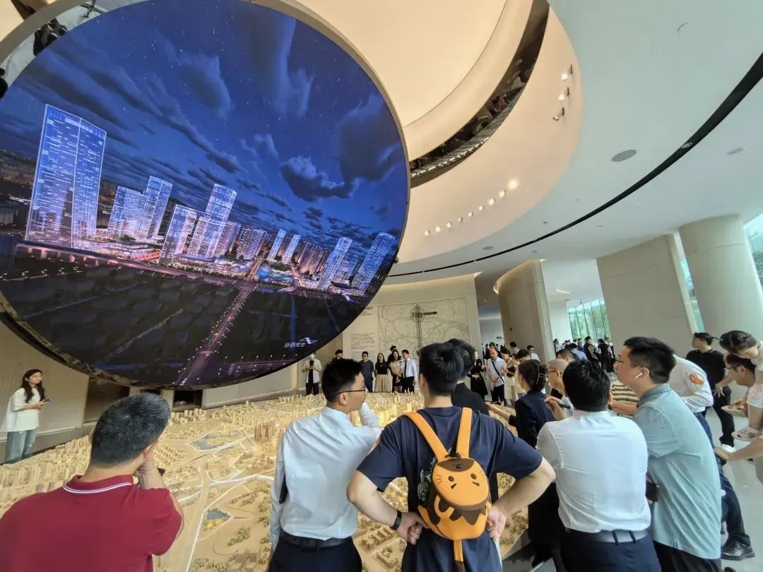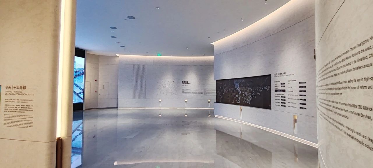同時也設有精心設計的圖文展示墻,詳細記錄了長隆萬博片區(qū)的發(fā)展歷程和未來規(guī)劃,從萬博片區(qū)到項目自身,層層遞進,即使非廣州本地人也能迅速了解板塊情況。從一樓,可以清晰看到番禺的發(fā)展,看到萬博CBD從1.0到3.0的一路進化與迭代。從2006年萬博商務區(qū)概念面世,再到2013年控規(guī)獲批,直至2023年完成擴容。擴容后的萬博商務區(qū),由1.5平方公里擴展至7.2平方公里,涵蓋漢溪長隆、萬博、里仁洞三大板塊,并統稱為“廣州南CBD”。360°沉浸式影廳,給大家描繪萬博未來城市的生活方式。