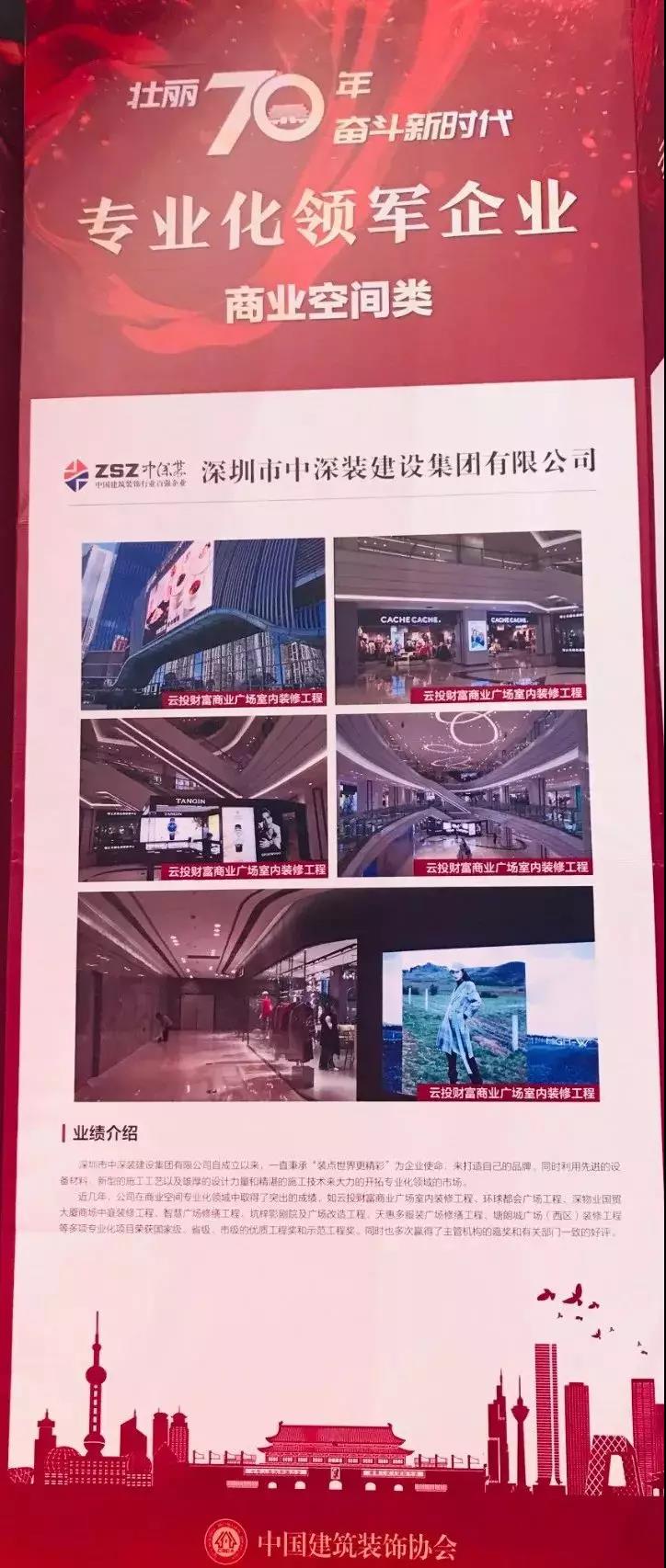 11月28日,為期2天的“第四屆全國建筑裝飾行業(yè)科技創(chuàng)新大會暨大國裝飾70年輝煌成就展”,在青島國際會議中心隆重開幕。在此次活動上,中深裝建設集團有限公司(以下稱“中深裝”)董事長柯穎鋒榮獲“行業(yè)領軍人物”榮譽稱號,同時,中深裝被授予“專業(yè)化領軍企業(yè)(醫(yī)療衛(wèi)生類)”、“專業(yè)化領軍企業(yè)(商業(yè)空間類)”、“專業(yè)化領軍企業(yè)(酒店空間類)”三項榮譽獎項。