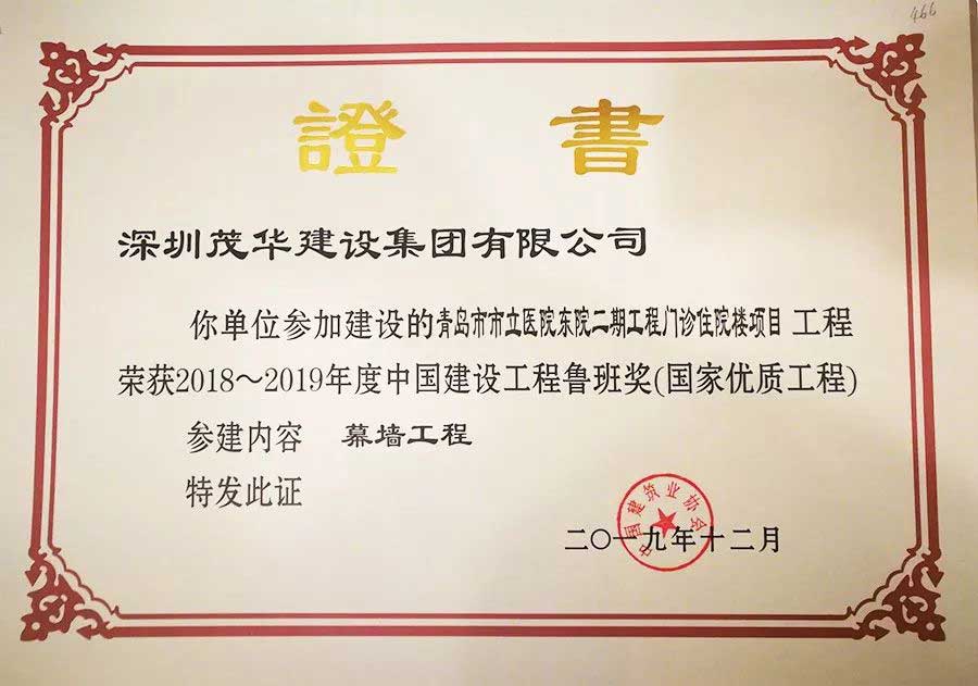 茂華建設:榮獲中國建設工程魯班獎
