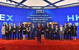 1月14日,深圳市文業集團控股有限公司(以下稱“文業集團”)在香港成功掛牌上市,香港聯交所股份編號:1802,并于當天宣布其股份在香港聯合交易所有限公司主板開始買賣。文業集團執行董事、主席兼行政總裁范少周,執行董事兼財務總監萬能,執行董事、副主席兼聯席公司秘書黃瑾等相關領導出席上市敲鐘儀式,敲響了上市的銅鑼,共同見證文業集團在香港上市這一重要歷史時刻。