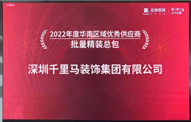 3月10日,金地集團華南區域地產公司2022年度合作伙伴大會在深圳金地中心總部召開。金地集團董事孫聚義、金地集團華南區域地產公司董事長張曉峰出席會議。深圳千里馬裝飾集團榮獲金地集團“優秀批量精裝修總包”供應商的稱號。