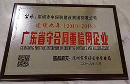中深裝:連續(xù)九年榮獲“廣東省守合同重信用企業(yè)”稱號