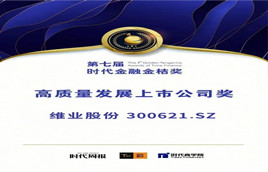 維業股份:榮獲“時代金融金桔獎——高質量發展上市公司獎”