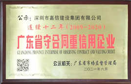 嘉信建設集團:連續十二年榮獲廣東省“守合同重信用”企業稱號