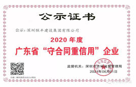 近日,深圳市市場監督管理局公布了2020年度廣東省“守合同重信用”企業名單,深圳聯豐建設集團有限公司(以下稱“聯豐建設集團”)成功入圍,再次獲評廣東省“守合同重信用”企業。