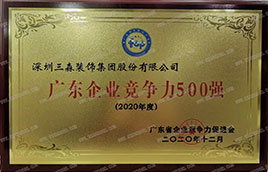 2020年12月30日,廣東省企業競爭力促進會發布“2020廣東企業競爭力500強榜單”及“2020廣東企業競爭力500強分析報告”,深圳三森裝飾集團股份有限公司(以下稱“三森裝飾集團”)憑借過硬的實力成功入圍“2020廣東企業競爭力500強榜單”。