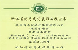 嘉信建設(shè):承建項目“杭州金沙印象城幕墻及采光天棚項目”榮獲“2020年浙江省優(yōu)秀建筑裝飾工程獎”
