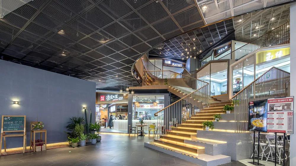 層層錯落的退臺讓琳瑯滿目的商業(yè)活動一目了然,各層之間的公共走道上,人們穿梭其中,或逛街,或聊天,或拍照,或坐下來休息喝咖啡,熱鬧非凡。