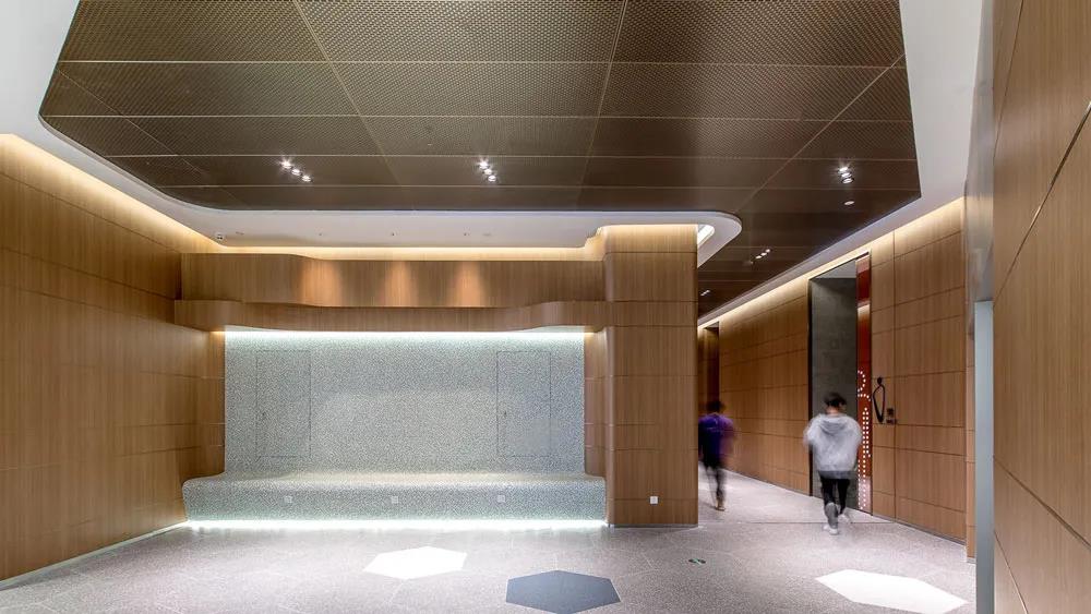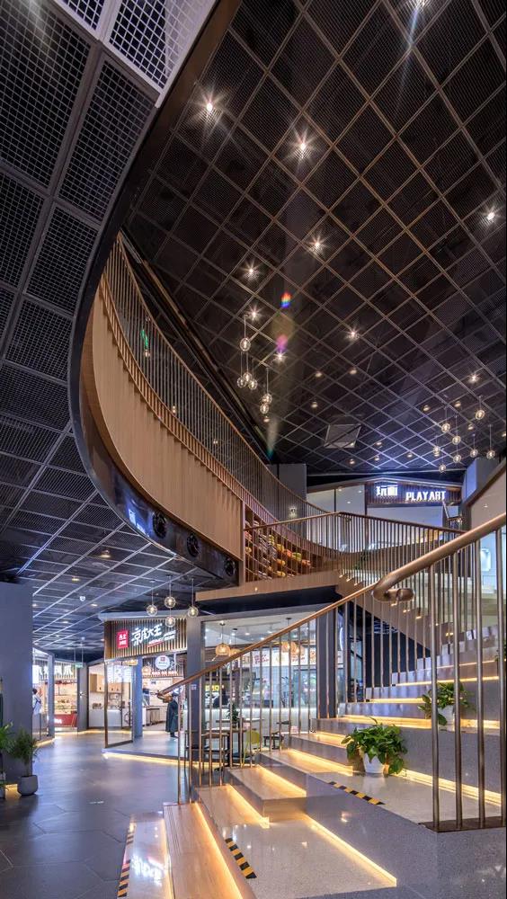 商業(yè)入口的設計更是整個項目的吸睛之處,天花的造型向外延伸,以此模糊室內外的界限,天花的造型提取于一棵枝繁葉茂的大樹向四周生長蔓延。