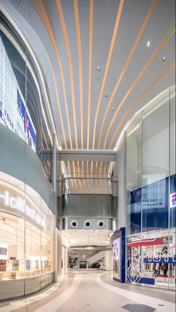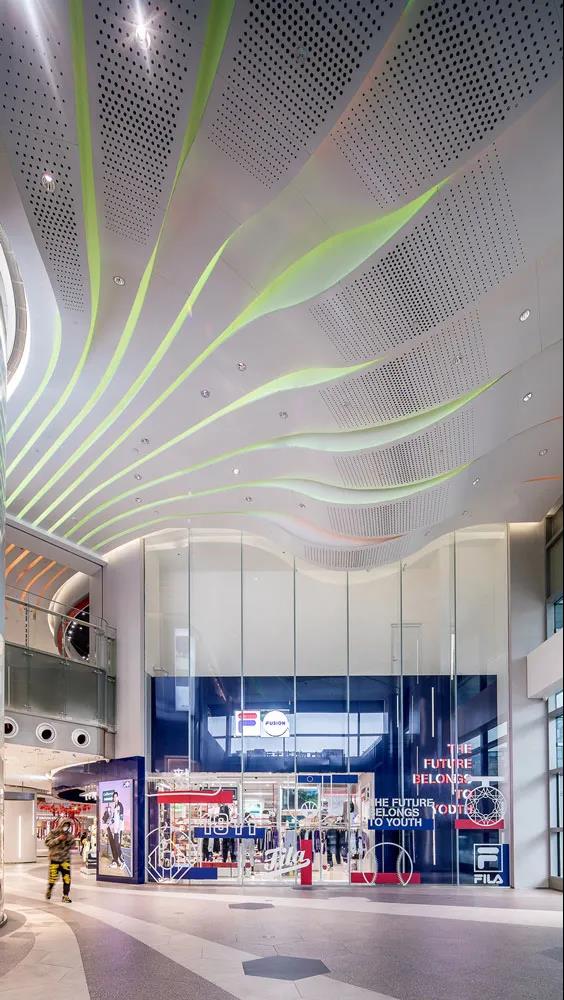 同時通過簡單的改變天花LED燈光的顏色,就能夠改變整個入口的氛圍,為商場帶來更多的未來感和時尚氣息。