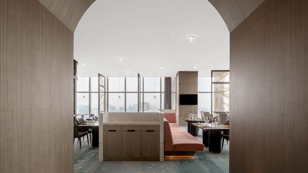 19層2300㎡空中懸浮大堂取“水上亭閣”之意,以城市天際云海為港灣,高踞成都之巔,飽覽錦江“九天開出一成都,萬戶千門入畫圖“的迤邐美景。