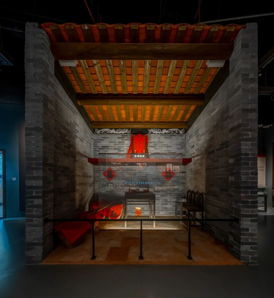 進入本展區,首先看到的是傳統文化節日展,通過圖文展板與實物陳列等手法,展示攔火社、中秋節、端午節等節日活動內容。婚嫁單元,采用場景還原的手法,結合智能調光玻璃系統,展示恩平傳統風俗,觸發感應區透明玻璃變為顯示系統,參觀者可欣賞恩平婚禮過程。非遺單元采用通壁展柜結合圖文展板展示省級非遺,上方設計恩平稱謂用語,同時在此處設置互動點播系統,“跟我學唱恩平民歌”和“跟我學說恩平話”,在互動中尋找樂趣。