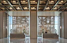 本案的概念設(shè)計就是將神秘、多樣且擁有極度包容性的海洋文化與云洲智能公司企業(yè)文化中的探索精神相結(jié)合。再用現(xiàn)代化設(shè)計語言、流線型工藝,打造出靈動且科技感十足的視覺體驗。首層大堂以流線藝術(shù)造型為視覺主調(diào),在用色上大面積的優(yōu)雅白中嵌著靜謐的海洋藍(lán),氣勢恢宏且充滿張力的柱體,屹立在在大堂中央并貫穿了建筑的一二層,既延伸了原建筑設(shè)計的結(jié)構(gòu),也相得益彰的凸顯了室內(nèi)設(shè)計的靈魂。
