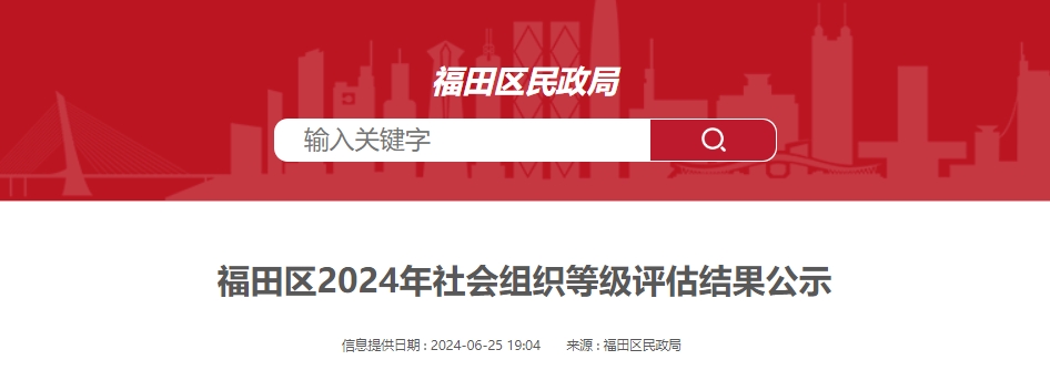 福田區(qū)2024年社會(huì)組織等級(jí)評(píng)估結(jié)果公示,協(xié)會(huì)獲評(píng)5A級(jí)社會(huì)組織。 ?