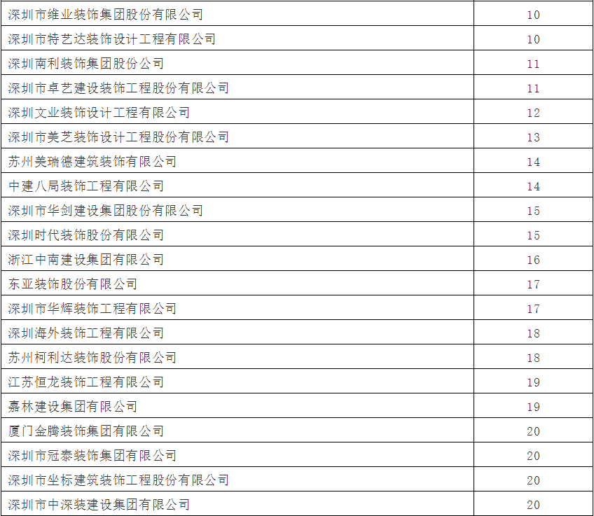 2020年度行業綜合數據統計工作分為裝飾、幕墻、設計三類,現將2020年度建筑裝飾行業數據統計結果名單予以公示。