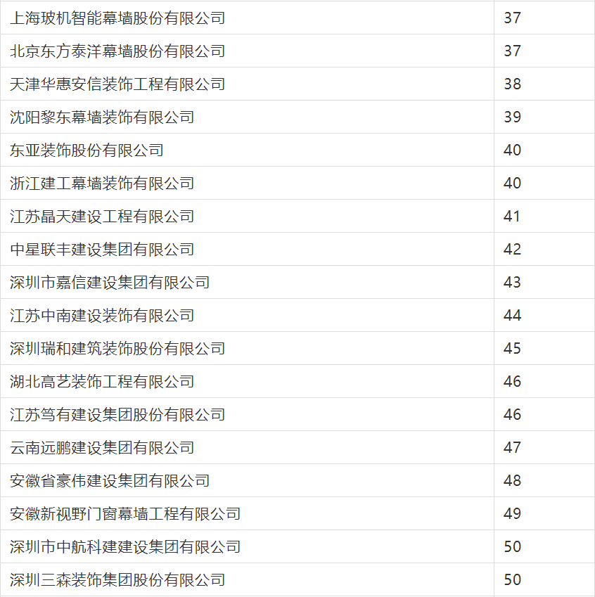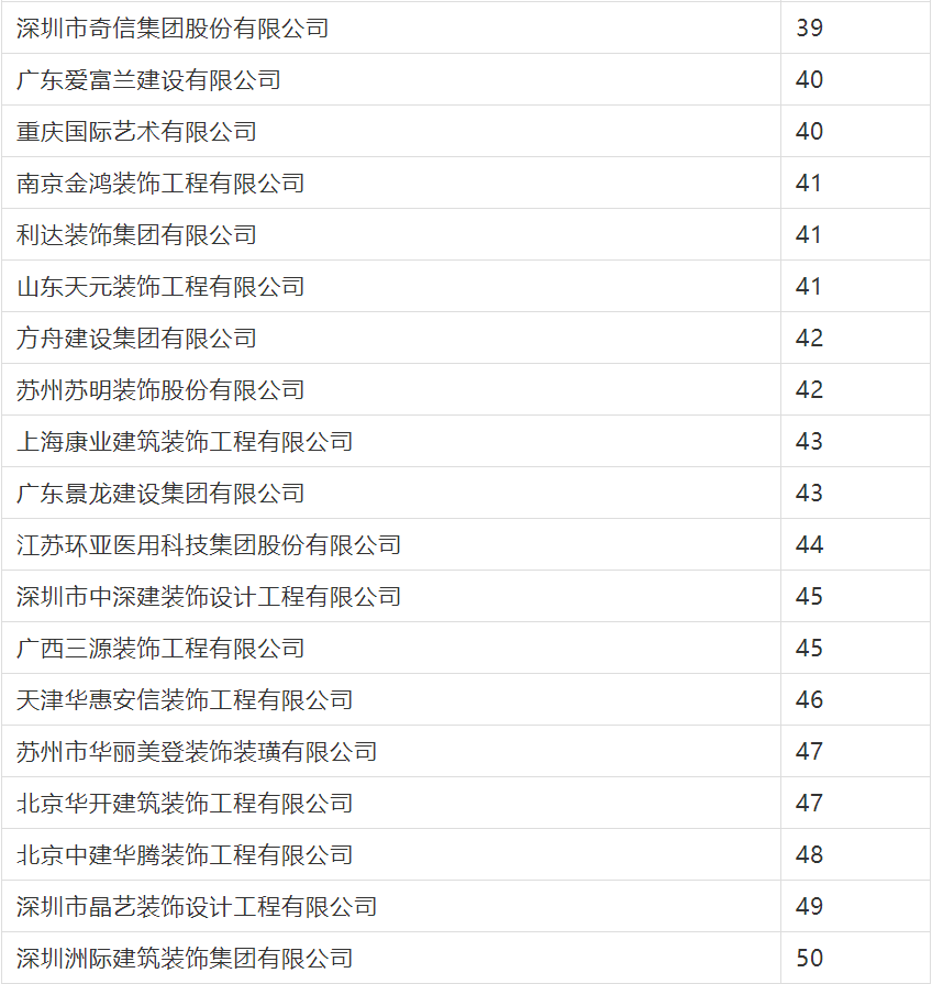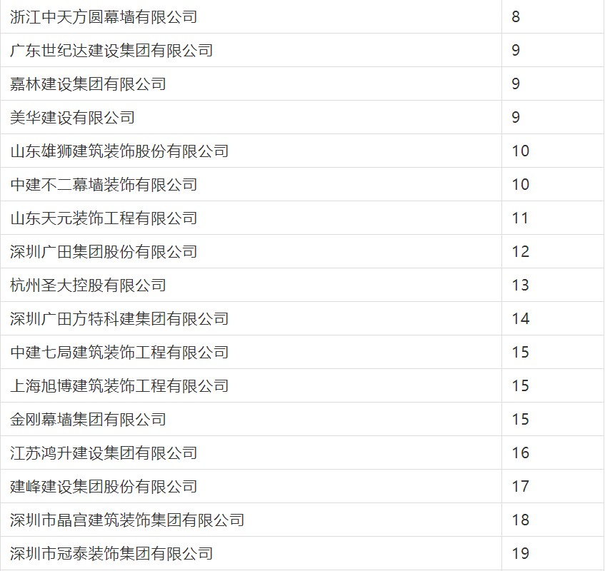 2020年度行業綜合數據統計分為裝飾、幕墻、設計三類,現將2020年度建筑裝飾行業數據統計結果名單予以公告。