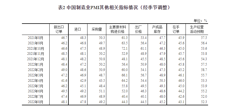 原材料庫存指數為48.0%,比上月上升0.1個百分點,表明制造業主要原材料庫存量降幅略有收窄。
