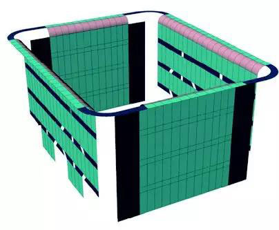(5)中心曲面位置,全部屬于異形單元板塊,其中存在許多扭轉的單元板塊, 其所有面板需要做成扭轉彎曲的,其型材框為不共面的直線拼接。