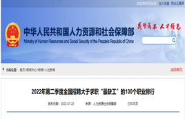 近日,人社部發布2022年第二季度全國招聘大于求職“最缺工”的100個職業排行。