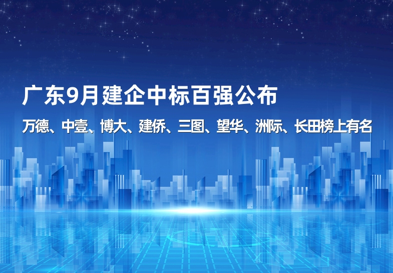 廣東9月建企中標百強公布,萬德、中壹、博大、建僑、三圖、望華、洲際、長田榜上有名