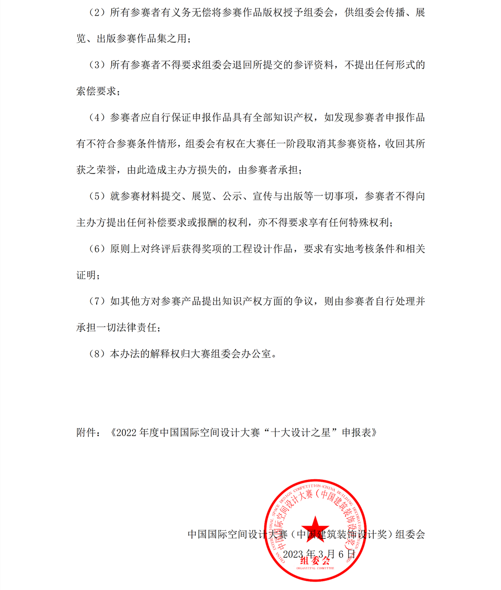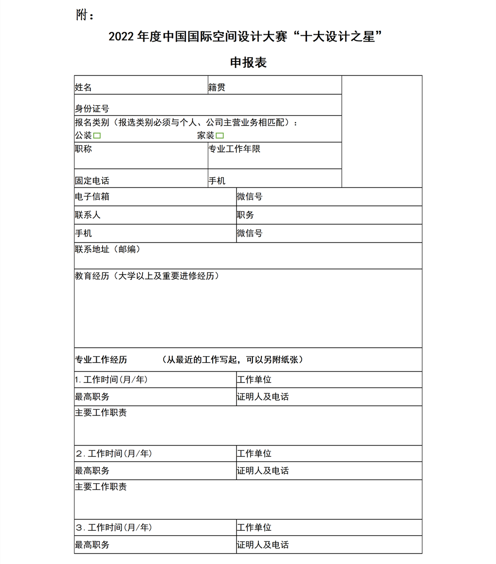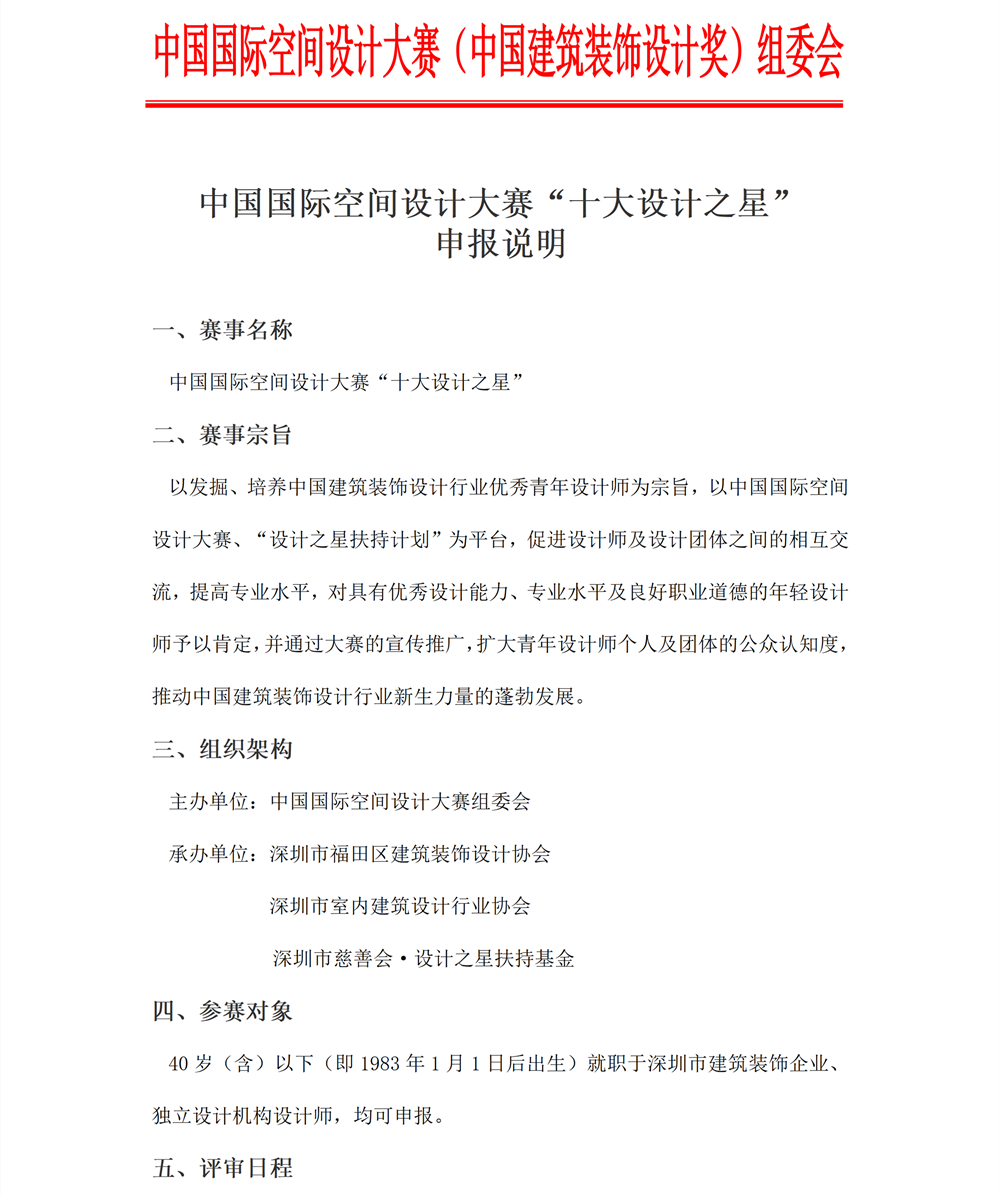 關(guān)于2022年度中國國際空間設(shè)計大賽“十大設(shè)計之星” 的申報說明